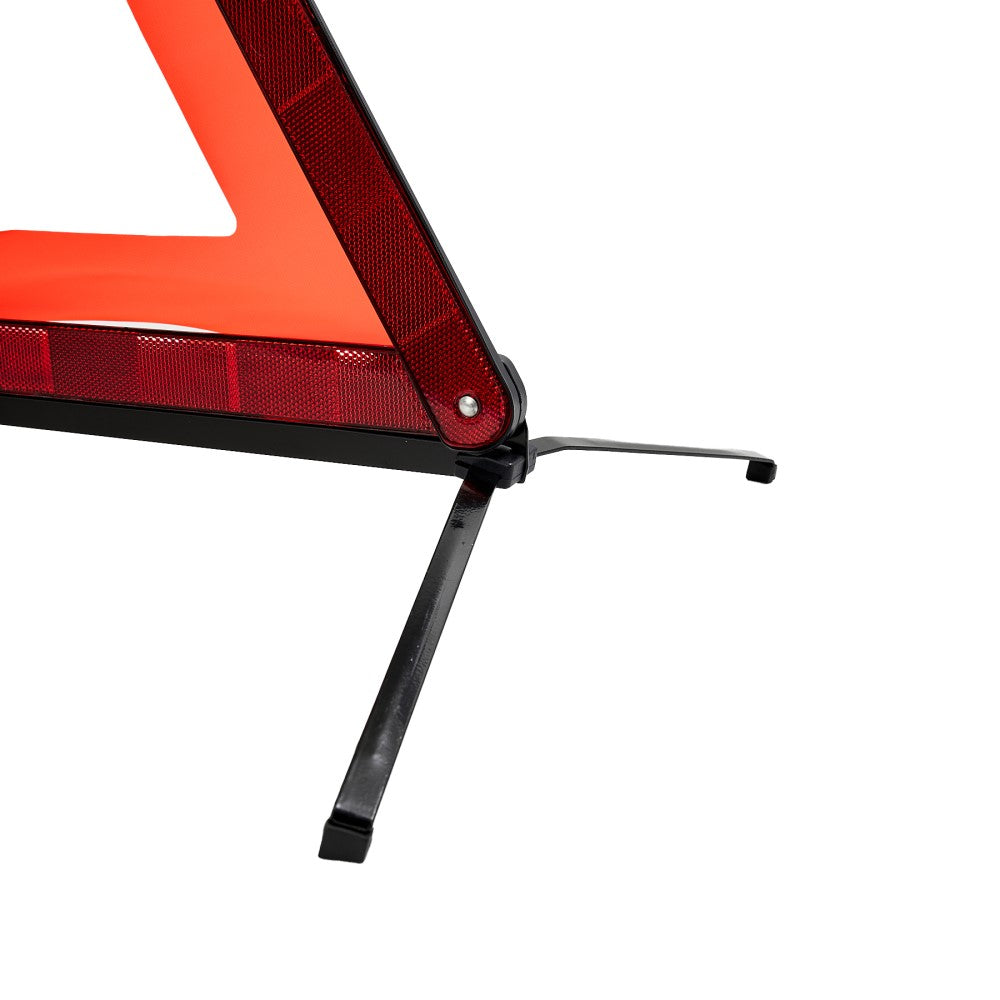 Triángulo de seguridad metálico para camión, mayor tamaño y reflectividad para visibilidad en rutas y autopistas; resistente y plegable.
